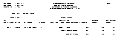 This report displays all outstanding payment vouchers for a selected fiscal year up to a specified accounting period. These outstanding payment vouchers are sorted by fund, agency, organization, sub-organization, transaction ID, and line number.